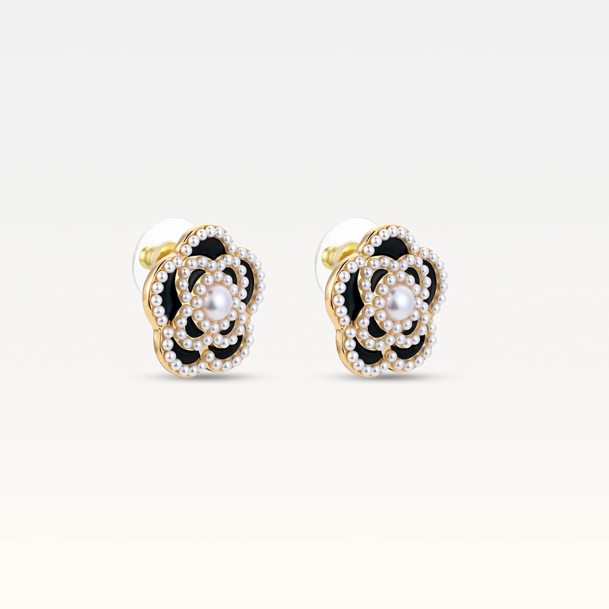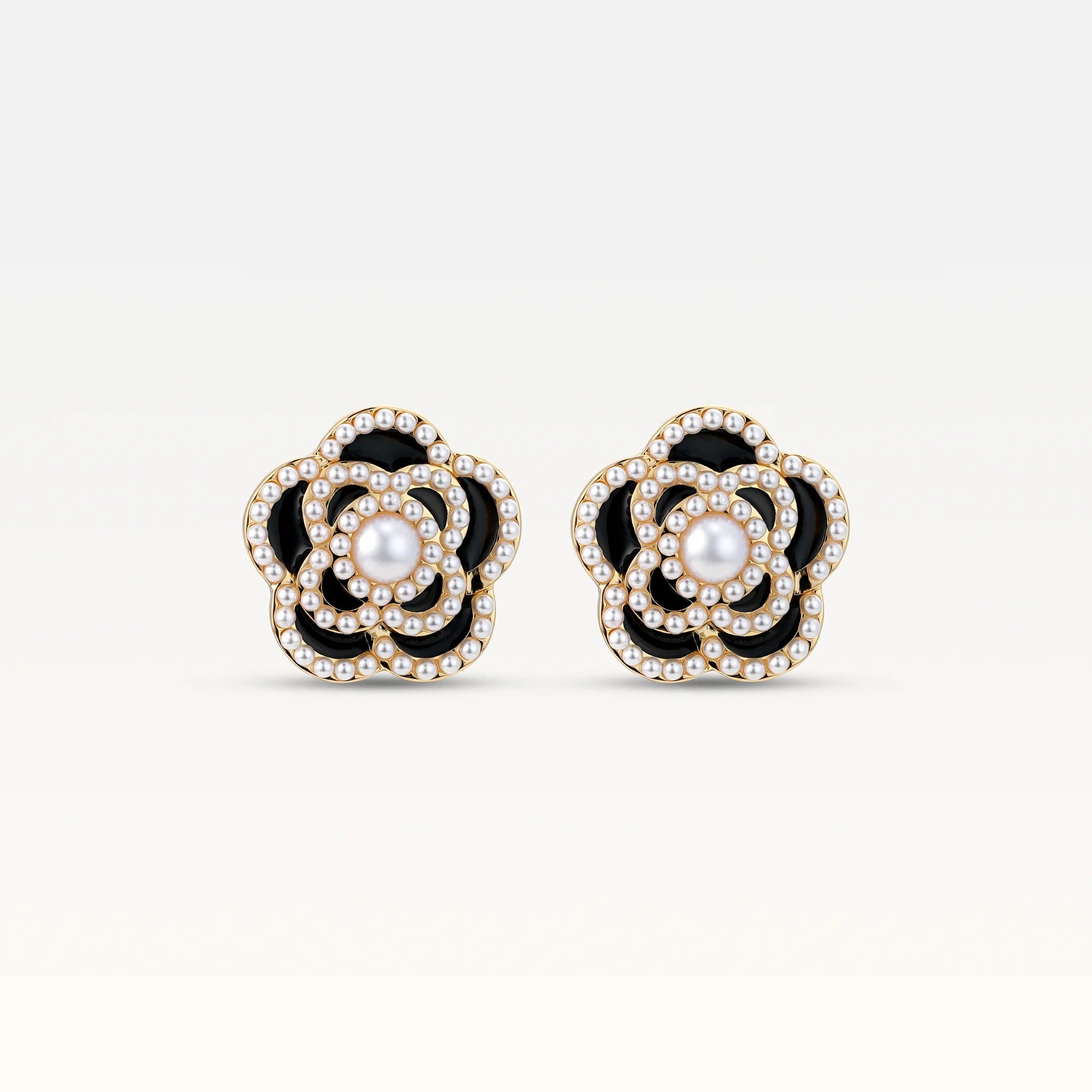 Eleganți și versatili, cerceii Signature GoBoutique sunt creați pentru a adăuga o notă rafinată oricărei ținute. Designul floral cu email negru, accentuat de mini perle și o perlă centrală luminoasă, oferă un aspect feminin și sofisticat.