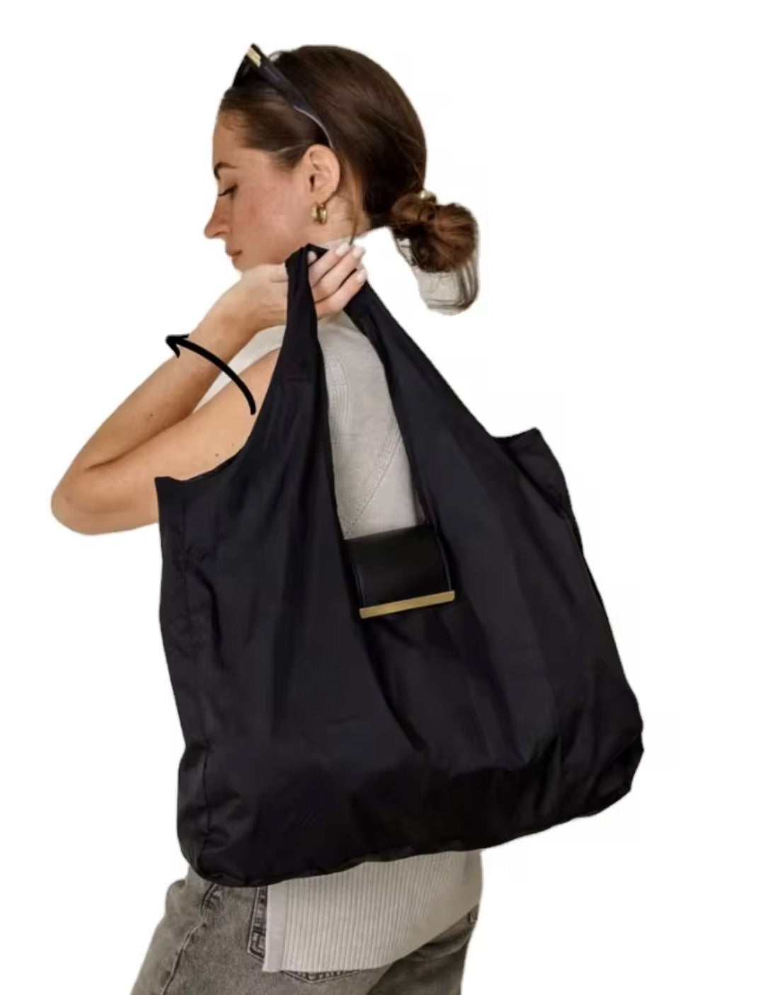 👜 Geanta pliabilă cu breloc din piele — Practică. Elegantă. Mereu cu tine.